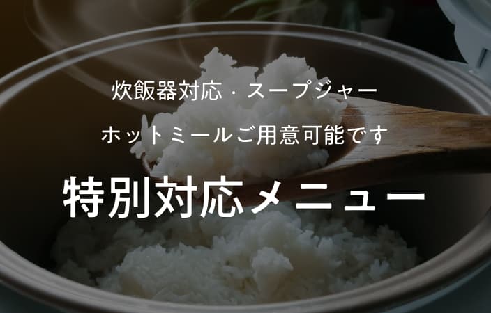 全ての食材に完全対応できない場合もございますので、詳細は事前にお問い合わせください。 -