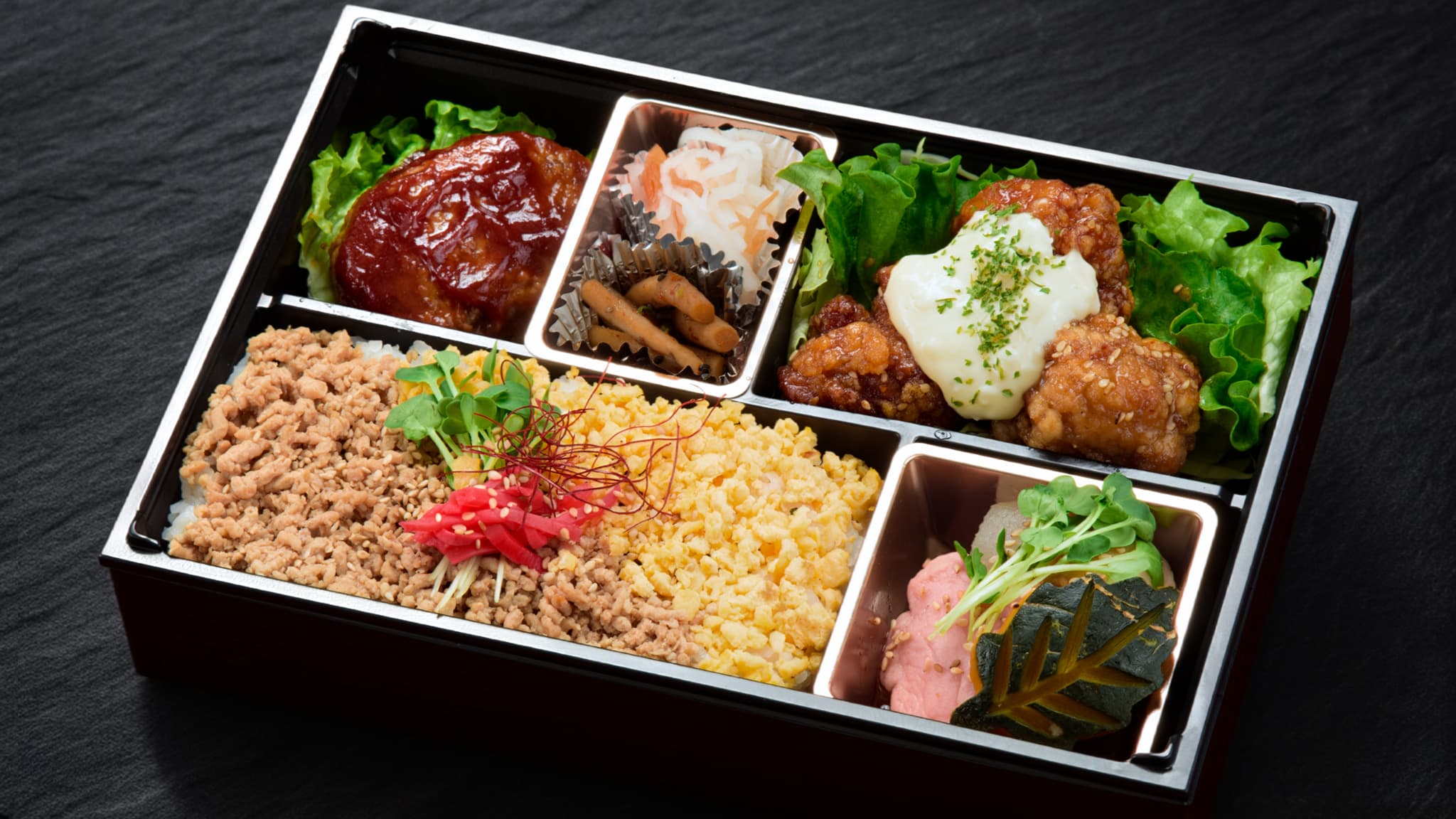 - ご飯との相性が抜群で、大人からお子様まで幅広く楽しめる弁当。