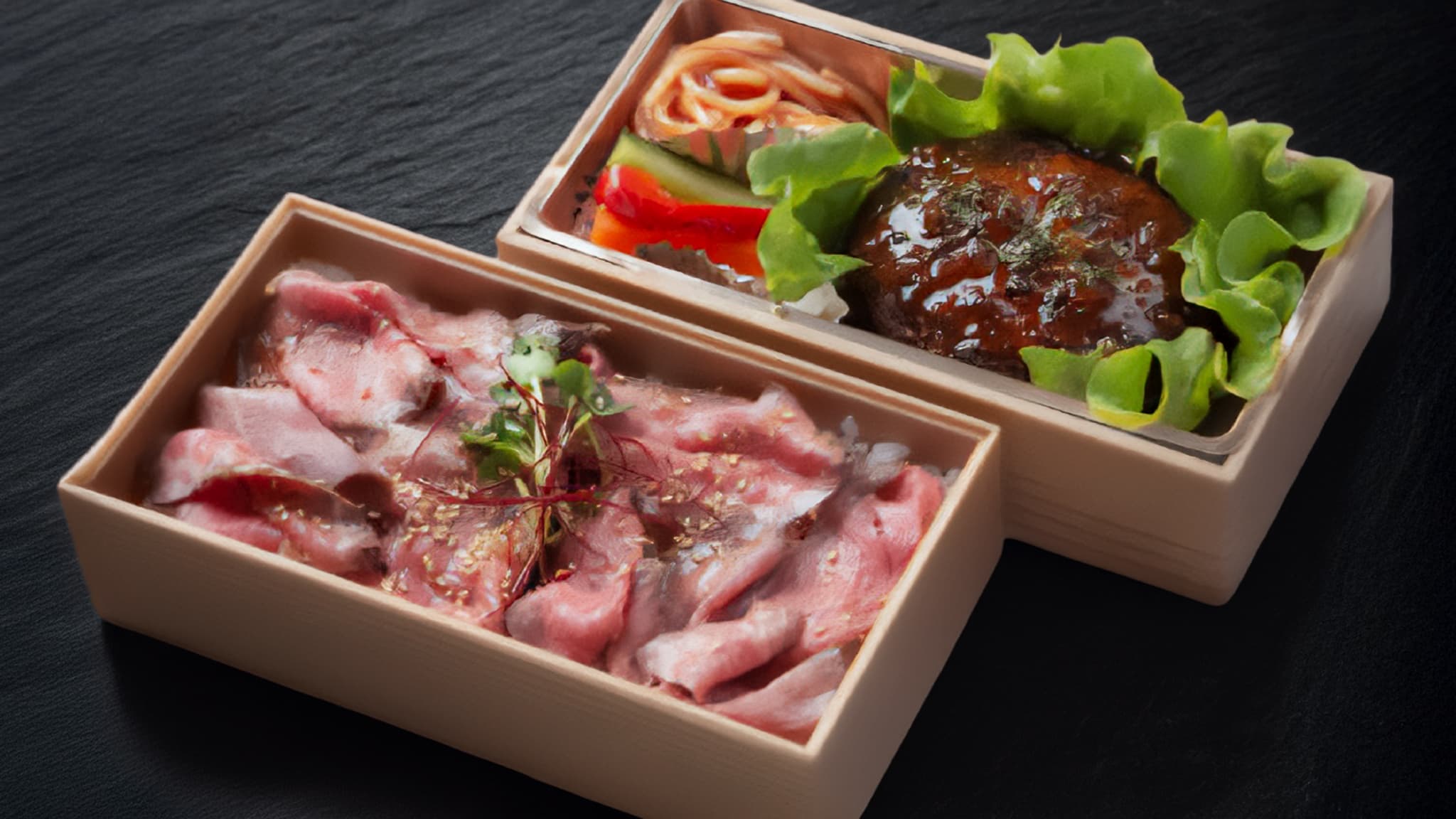 手ごねハンバーグ&厳選牛ローストビーフ2段御膳