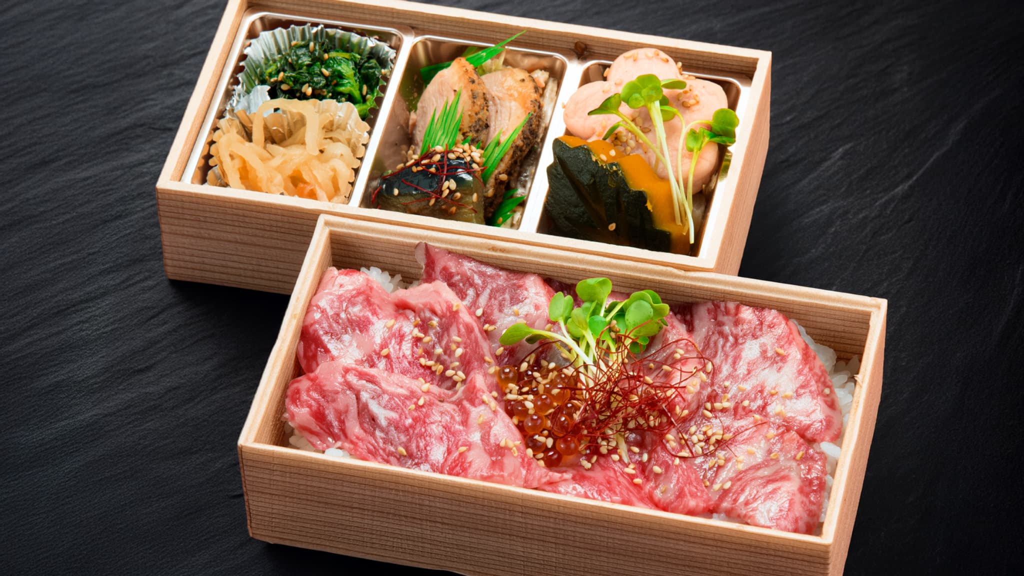 A4黒毛和牛ローストビーフ2段御膳
