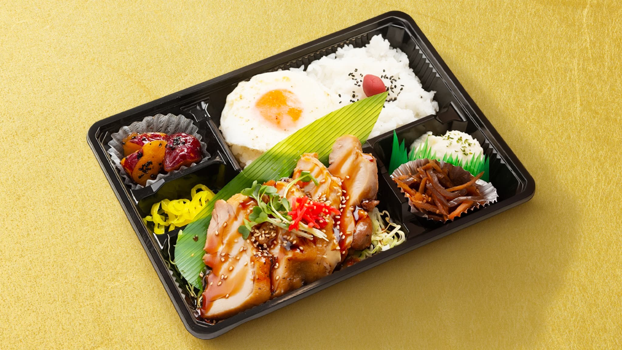 - 特製ダレで焼き上げた鶏の照り焼きをメインに、副菜も豊富に盛り込んだお弁当